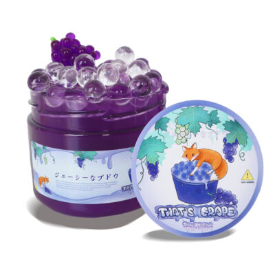With this slime you get an additional grape charm inside the pot for a see-through decoration effect and crystal clear beads for a colliding sound and feeling.
